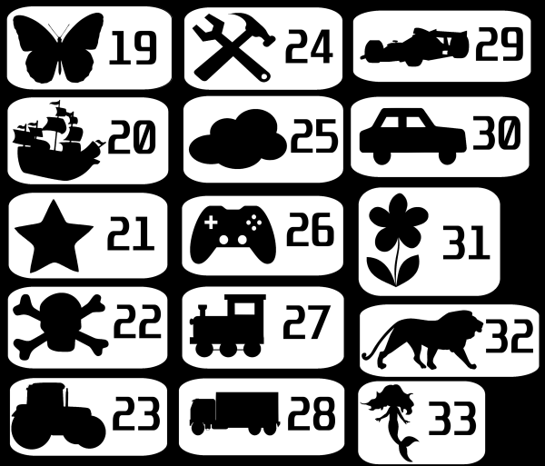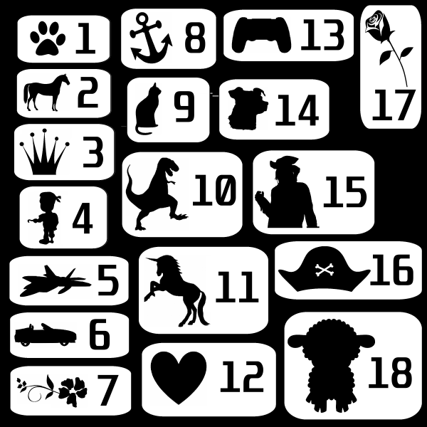 ✔ Symbolwahl: Wähle zwei oder mehr Lieblingssymbole – z. B. ⭐ ❤️ 🚗 🚂 🌸 🎮