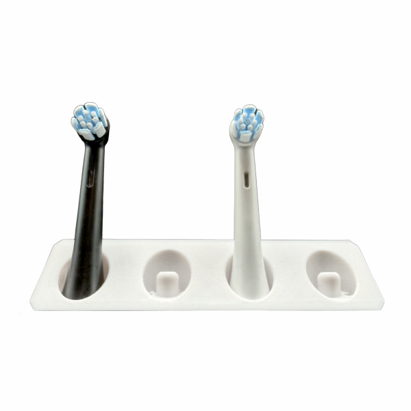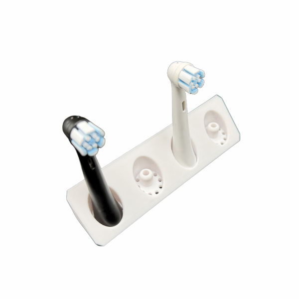 Der BrushDock ist ein kompakter, langlebiger und hygienischer Zahnbürstenkopfhalter für eine trockene, saubere und platzsparende Aufbewahrung von Aufsteckbürsten.