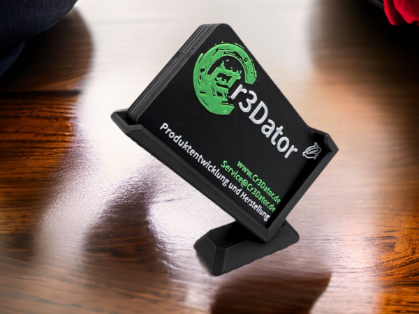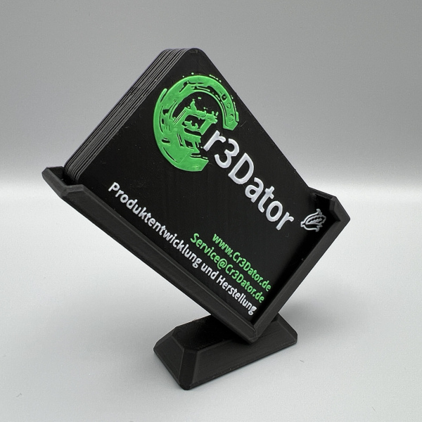Der hochwertige und exklusive Visitenkartenhalter wird im 3D-Druckverfahren aus schlagfestem PLA Plus hergestellt.