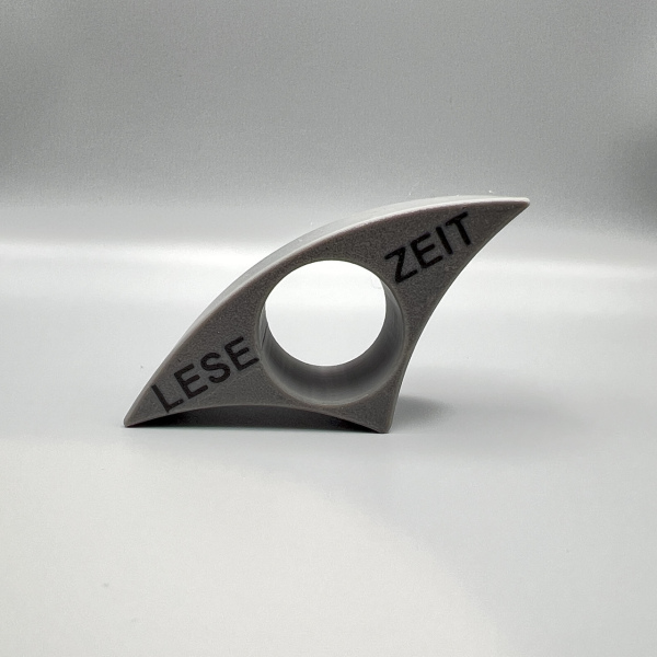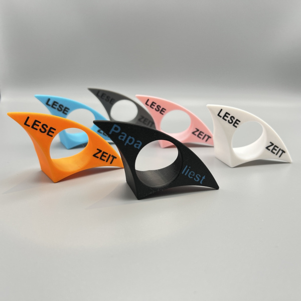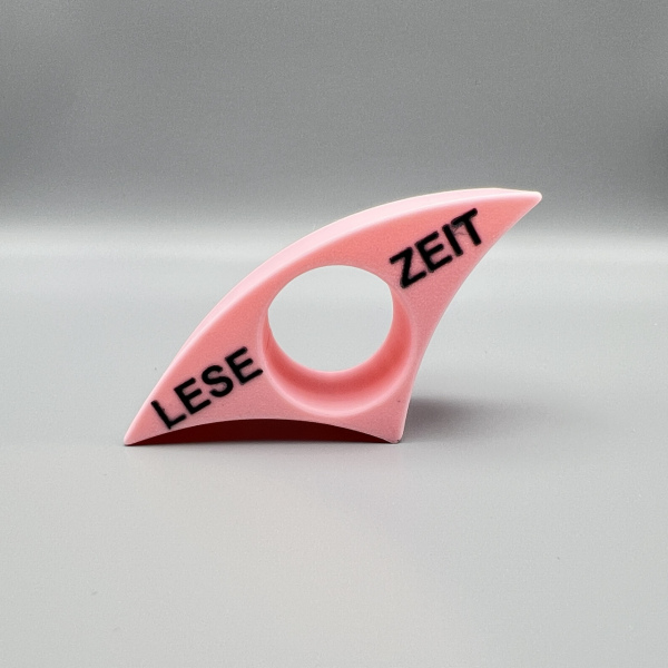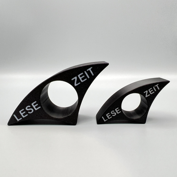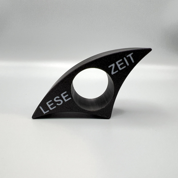 Wir bieten Ihnen den Buchseitenhalter in verschiedenen Farben an. Gerne können wir Ihnen auch statt dem Schriftzug LESEZEIT auch personalisiert einen eigenen Text verpassen. Zusätzlich kann auch auf der Rückseite ein Text eingebracht werden. Beachten Sie jedoch bitte, dass nur 8 bis 10 Zeichen möglich sind und dies getrennt, konstruktionsbedingt.