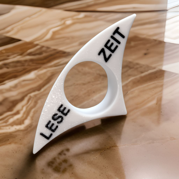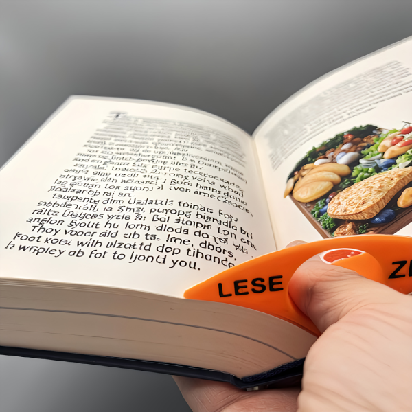 Wenn Sie gerne Bücher lesen, wird Ihnen unser Buchseitenhalter gefallen. Mit Ihm ist es möglich, gemütlich mit einer Hand ein Buch zu halten und dem Lesespaß freien lauf zu lassen. Kein ermüden der Finger oder der Hand durch unnötig hohe Kraftaufwendung mit dem Buchseitenhalter. In der neuen Version haben Sie noch mehr Einblick ins Buch, bei dennoch extrem bequemer Daumenposition, durch die breite Auflagefläche. Konkurrenzprodukte sind deutlich schmaler und schmerzen oft nach einer Weile im Daumen.